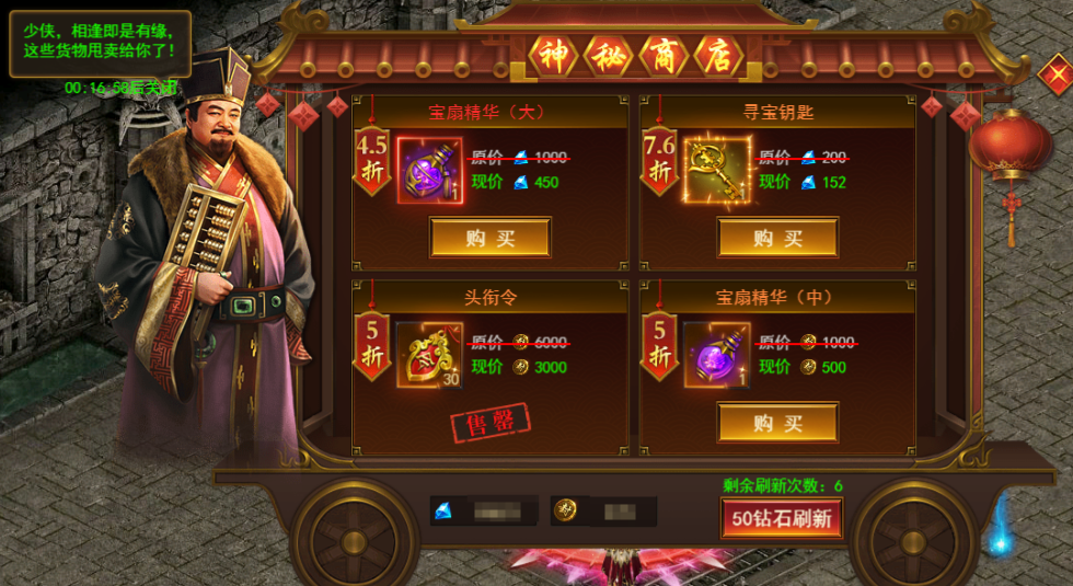 神秘商人也有时间限制,倒计时结束后会自动关闭商店页面