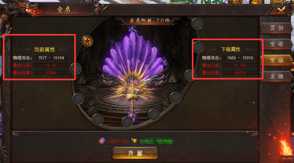 宝扇升星可以增加角色的物理攻击、暴击几率和暴击伤害