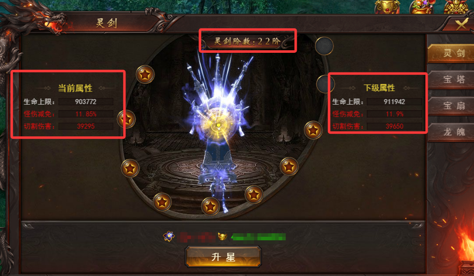 灵剑升星可以增加角色的生命上限、切割伤害和怪物伤害减免