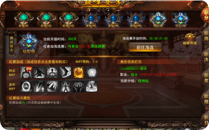 -可购买比赛buff,限购4个,只在巅峰赛中生效