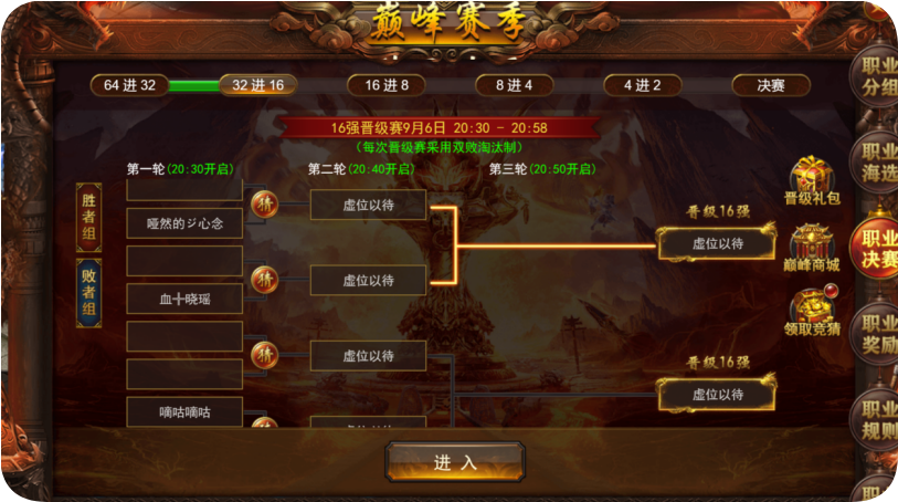 - 满足时间和转生条件的玩家可以参与对应的职业海选赛。