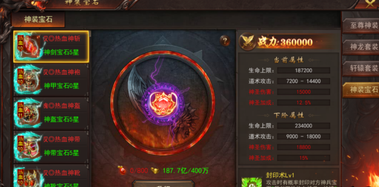 玩家大大们激活神装宝石系统,需要先穿戴至少10阶以上的热血装备
