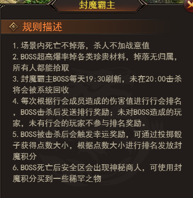 4.神秘商人:BOSS死后安全区出神秘商人,用封魔积分就能换稀有好物,换完直接起飞!