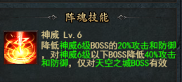 在阵魂系统中有个神威技能,它能够显著地降低天空之城BOSS的攻击力和防御力。