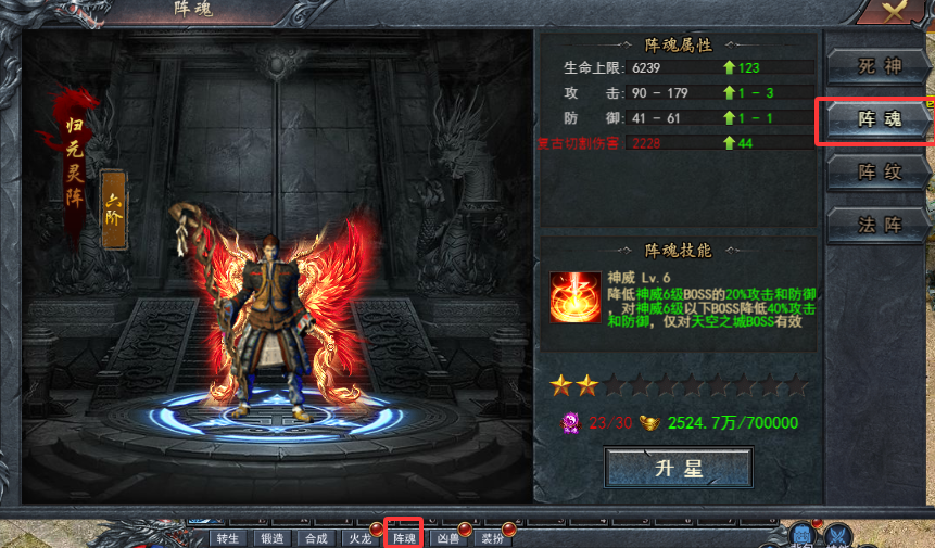 玩家大大们进行入复古大陆后,点击下方的阵魂可以查看详情。